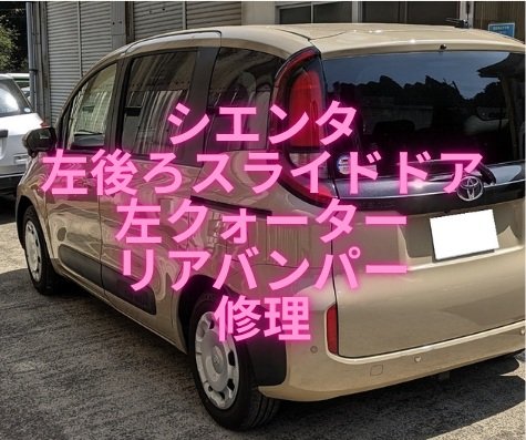 【成田市・富里市・香取市・匝瑳市・旭市】 シエンタ 左後ろスライドドア/左クォーター/リアバンパー キズへこみ修理