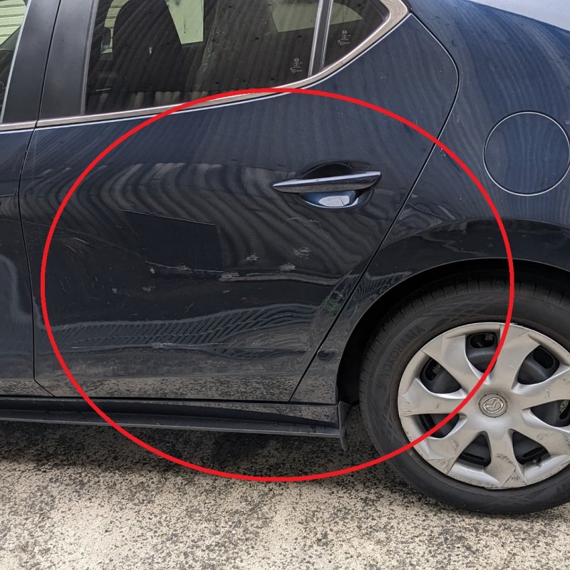 【成田市・富里市・香取市・匝瑳市・旭市】 MAZDA3ファストバック 左後ろドア/左クォーター キズへこみ修理