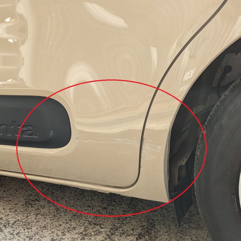 お車を確認させて頂くと、左後ろスライドドアと左クォーター、リアバンパーにキズへこみが付いていました。