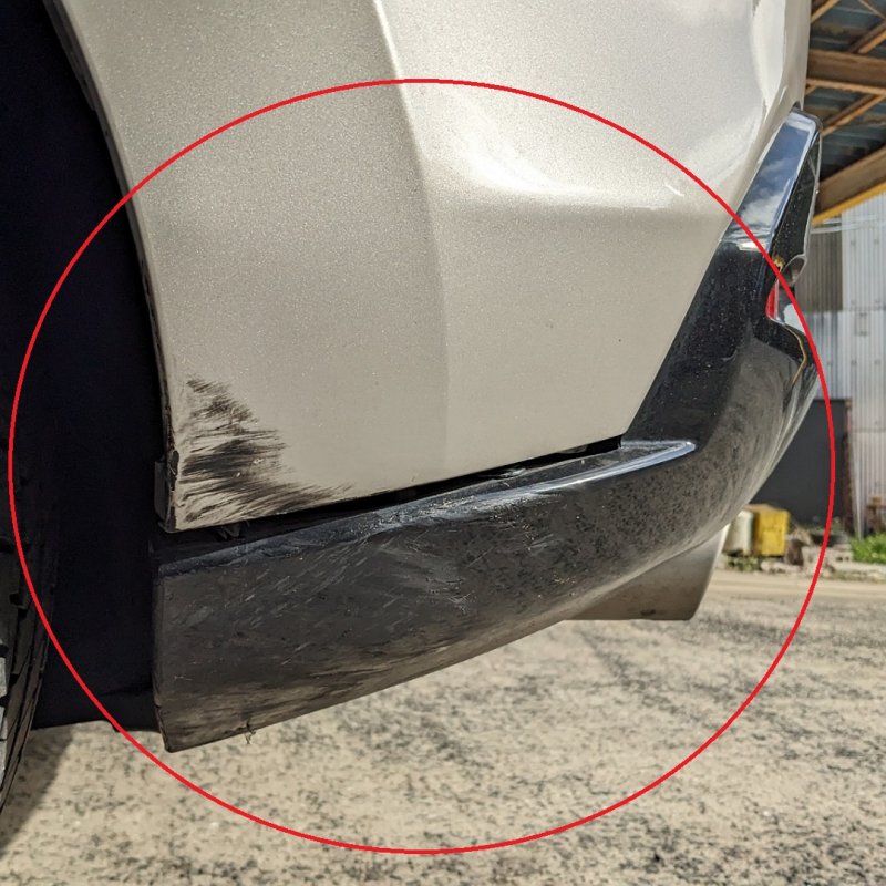 お車を確認させて頂くと、フロントバンパーに左側部分とリアバンパーの左側部分に擦り傷が付いていました。