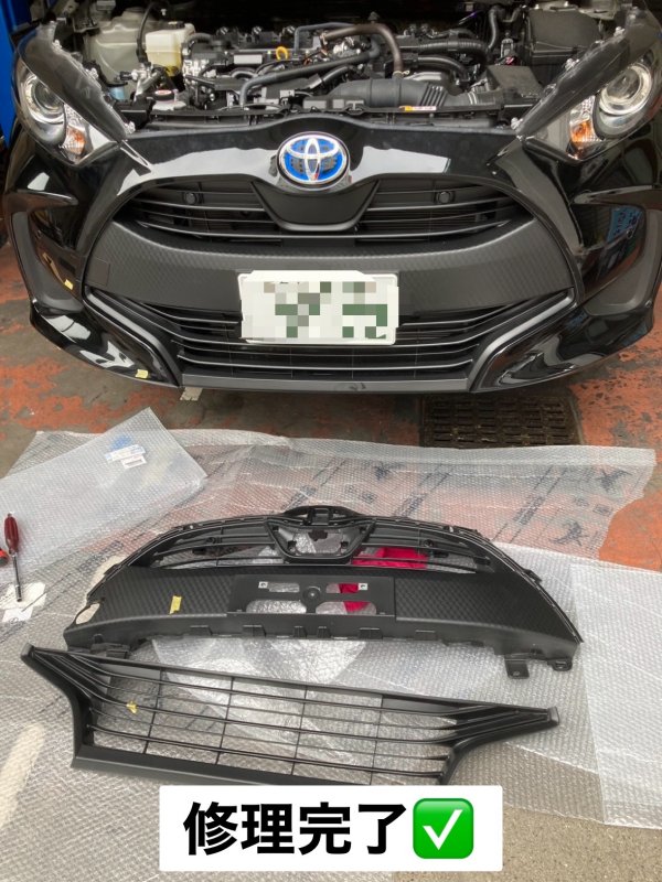 岐阜県中津川市|ヤリス(トヨタ)のキズ・へこみ直し事例( Fバンパー脱着 Fグリル交換 リテーナー交換 センサー類移植 バンパー研磨 作業)