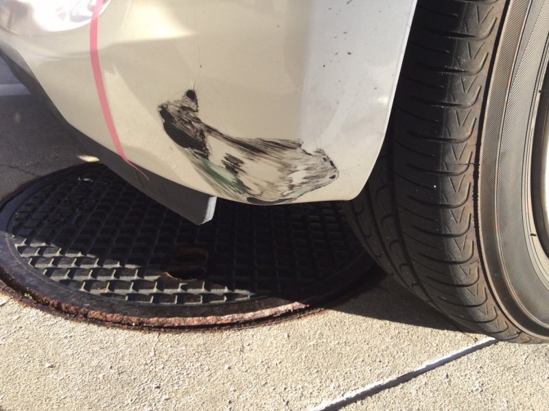 バンパーの左の角にすり傷、へこみがありましたが全て綺麗に修理させて頂きました。