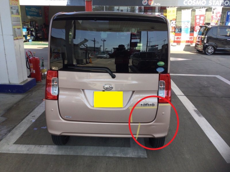 ダイハツ タント バックドア リアバンパー 修理 傷 へこみ 板金 塗装 交換 大阪 羽曳野市