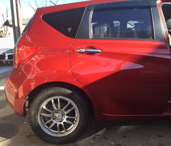日産ノートのリアドア、リアクォーターパネルの修理