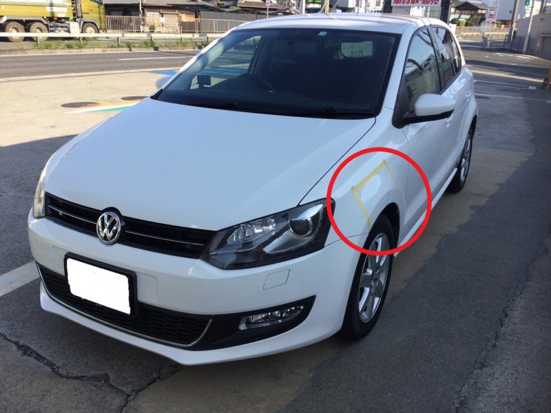 フォルクスワーゲン ポロ フェンダー 傷 へこみ直し 修理 板金 塗装 大阪 堺市