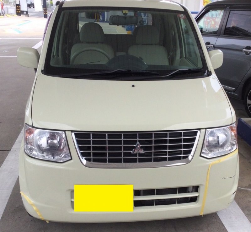 三菱eKワゴンのフロントバンパーの傷、へこみの修理です。