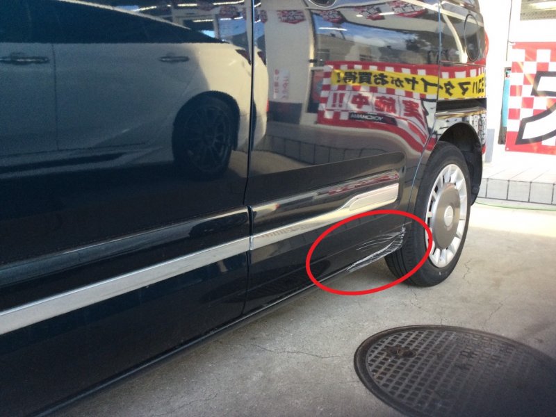 ダイハツ ムーブキャンバス リアドア ロッカーパネル 傷 へこみ 板金 塗装 修理 大阪 堺市