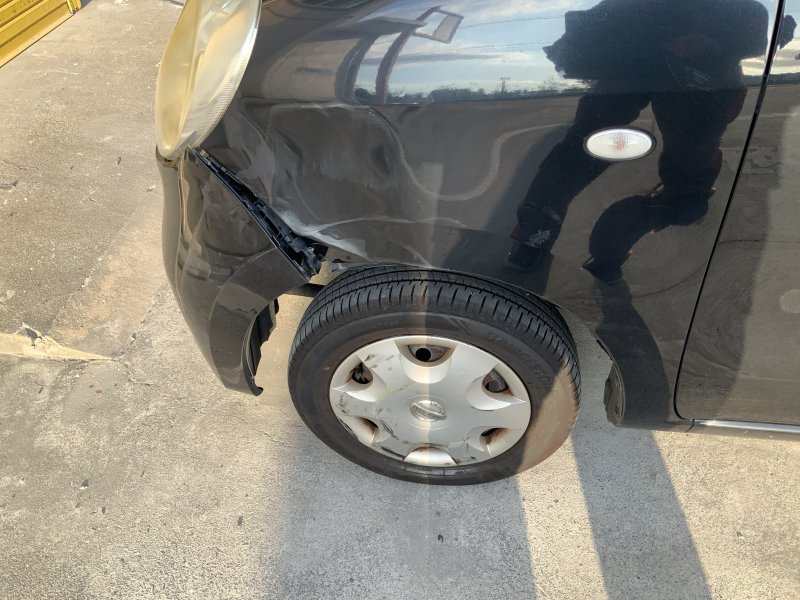 衝突時の力でフェンダーが曲がりました。