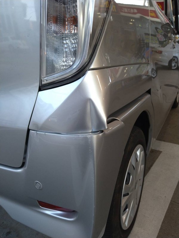 リアフェンダーは鈑金修理、リアバンパーは裂けていたので交換作業となりました。