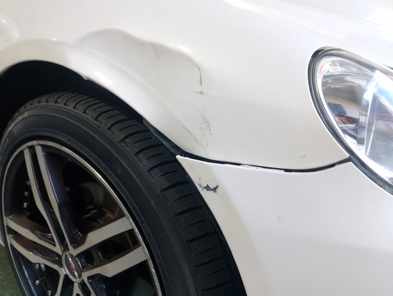| 修理の箇所・サービス内容 | フロントバンパー交換(中古)、右フロントフェンダー凹み、他リアバンパー擦り傷鈑金修理 |