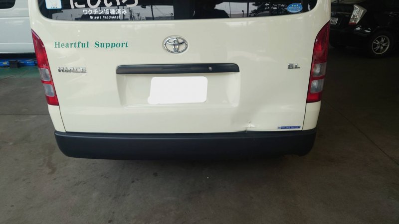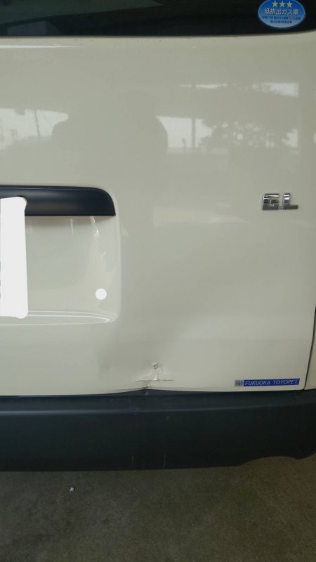 福岡県福岡市東区|ハイエース(トヨタ)のキズ・へこみ直し事例(後ろドアパネル キズ ヘコミ 車 修理 鈑金)