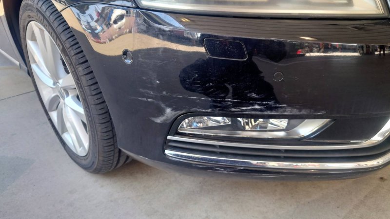 福岡県福岡市東区|.(フォルクスワーゲン)のキズ・へこみ直し事例(前バンパー 左タイヤ上(フェンダー)キズ ヘコミ 車 修理 鈑金)