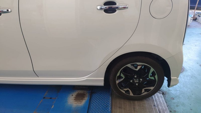 福岡県福岡市東区 中央区 久山 |N-ONE (エヌワン)(ホンダ)のキズ・へこみ直し事例(左フェンダー 左スポイラー キズ ヘコミ 修理) 鈑金 板金 整備