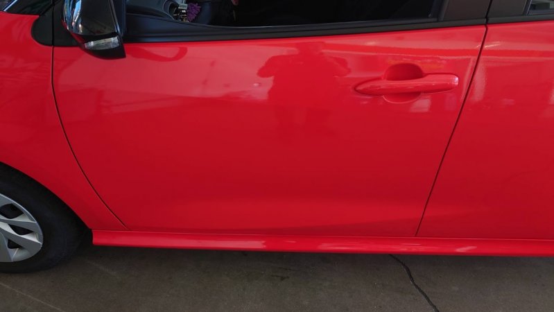 福岡県福岡市東区|ヤリス(トヨタ)のキズ・へこみ直し事例(左前 ドアパネル キズ ヘコミ 車 修理 鈑金)