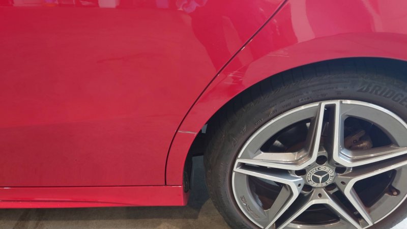 | 修理の箇所・サービス内容 | 左後ろタイヤ前(フェンダー) キズ ヘコミ 車 修理 鈑金 |