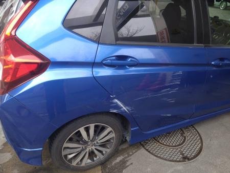 鹿児島県鹿児島市|FIT(ホンダ)のキズ・へこみ直し事例(後部ドア クオーターパネル ステップカバー)