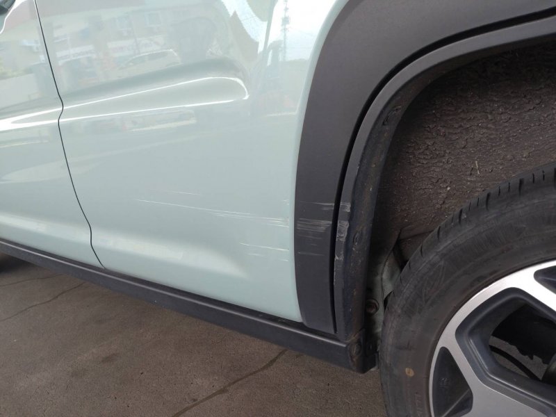 とてもキレイなお車でしたが、ドアとフェンダー部分を内輪差でぶつけてしまい交換レベルの凹みでしたが、なんとか修理にて対応させて頂きまし
