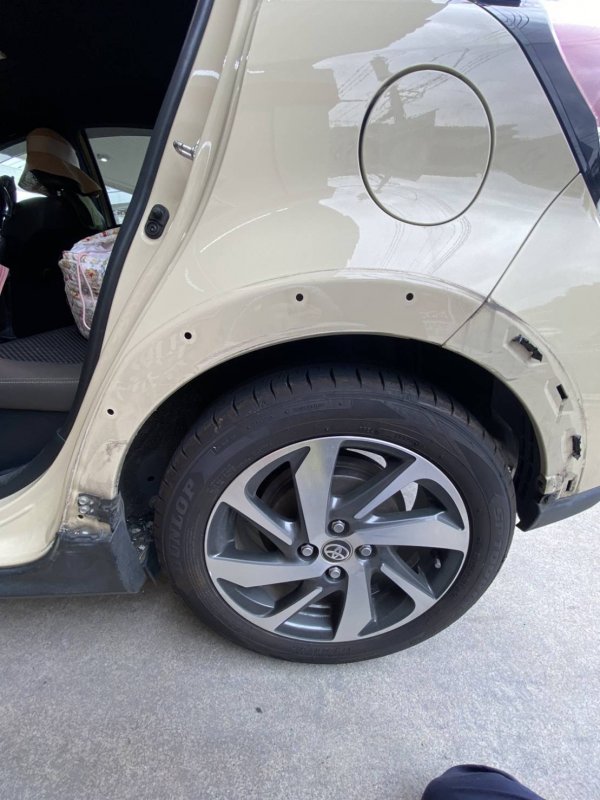 鹿児島市薬師【板金塗装】トヨタ ヴィッツ 助手席側のキズヘコミ修理事例