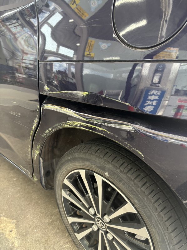 鹿児島県鹿児島市|ノア(トヨタ)のキズ・へこみ直し事例(①左リアドア ②リアバンパー ③左クウォーターパネル)