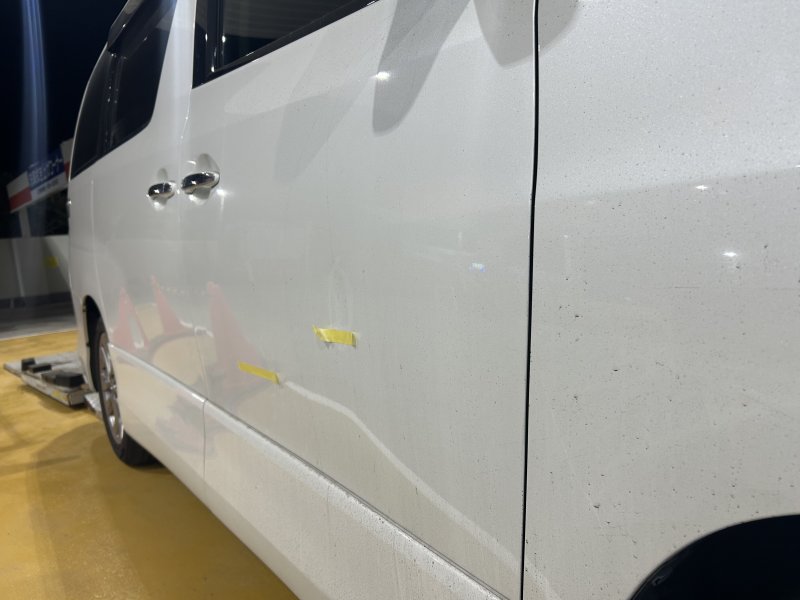 アルファードのお客様でフロントドアのヘコミが出来たとの事で、修理のご相談をいただきました。