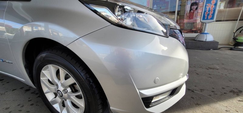 鹿児島県鹿屋市|ノート(日産)のキズ・へこみ直し事例(フロントバンパー)