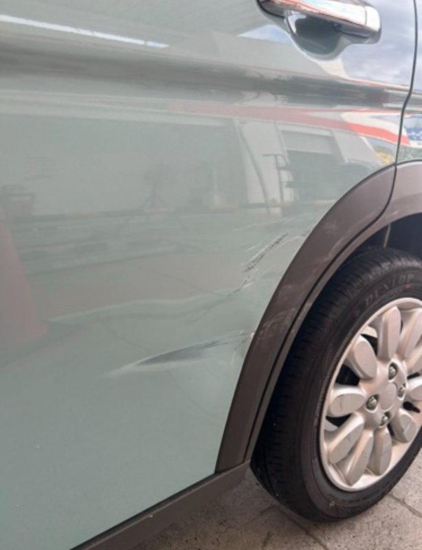 アルトラパンにお乗りのお客様より、「駐車の際に車の後方を壁に当ててしまい、キズとへこみができてしまった」とのご相談をいただきました。リアドアとガーニッシュ部分に損傷があり、状態を確認のうえ修理を実施しました。