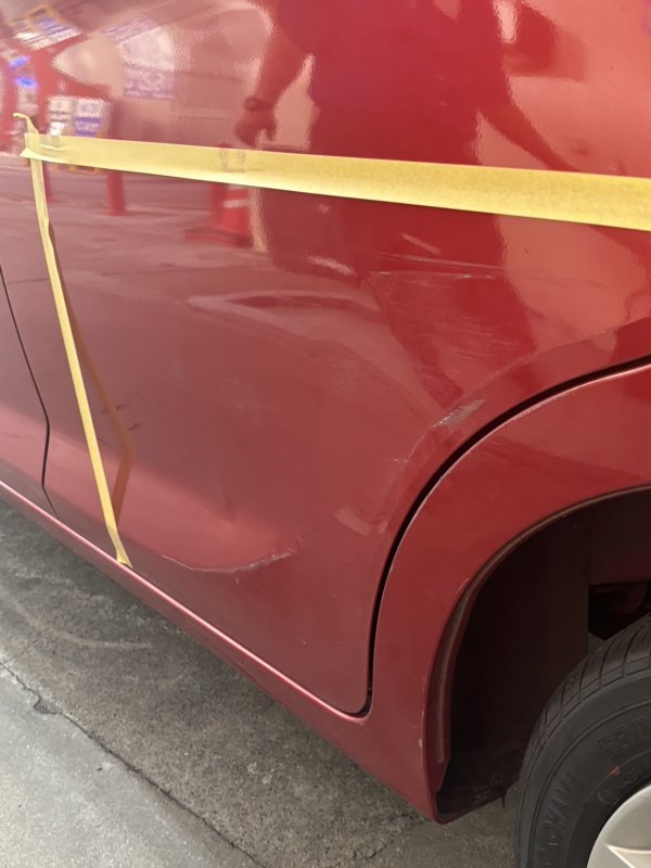 デイズにお乗りのお客様よりドアやフェンダー部分をブロックに擦ってしまい傷やヘコみが出来たため、直しのご依頼を頂きました。