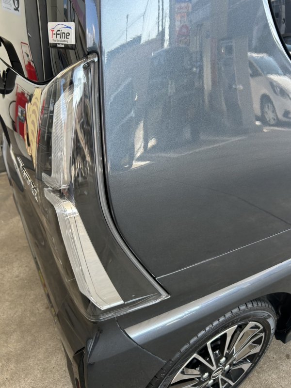 タントのリアフェンダーにへこみができたとのことで修理のご相談をいただきました。