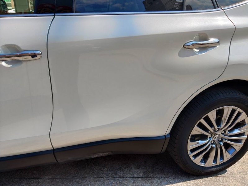 福岡県福岡市中央区|ハリアー(トヨタ)のキズ・へこみ直し事例(左後ろドア下(ステップバー) キズ ヘコミ 鈑金 修理)