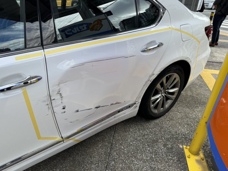 【鈑金修理事例】左折時の接触でキズ・へこみが発生|ご来店・修理のご依頼ありがとうございます
