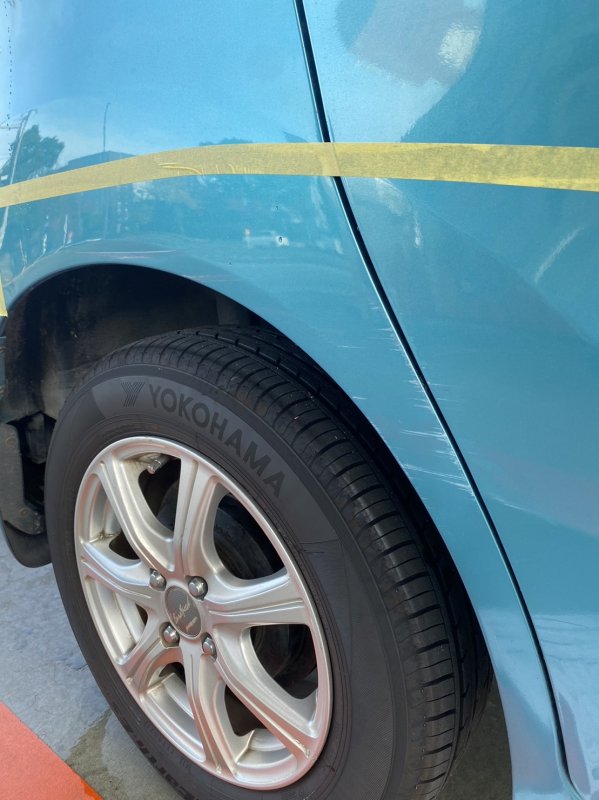 運転席側の後方部分をブロック塀等に当ててしまいキズヘコミや擦り傷ができてしまい、修理のご相談でご来店頂きました。