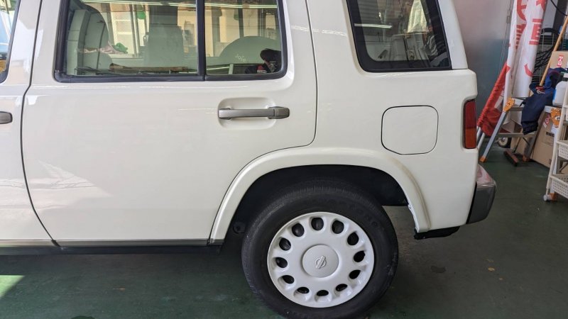 福岡県福岡市南区|ラシーン(日産)のキズ・へこみ直し事例(①左リアドア ②左リアフェンダー ③右リアフェンダー ④左リアフェンダー ⑤リアバンパー)