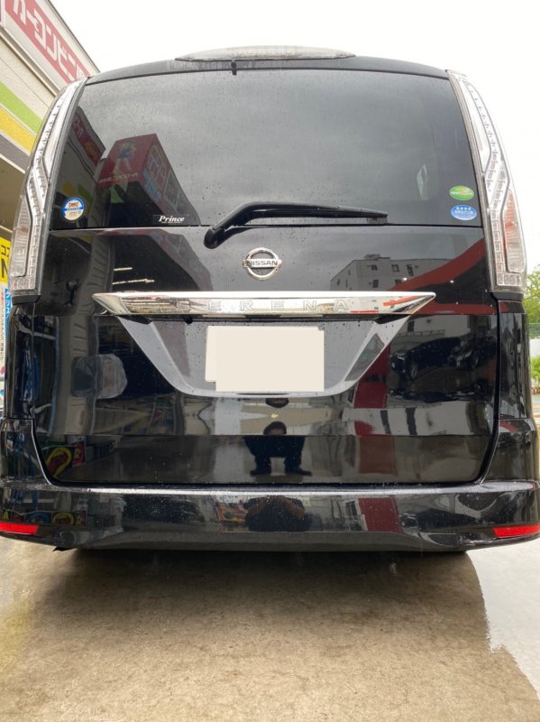 福岡市南区【板金(鈑金)塗装 】日産セレナ 助手席側リアフェンダー、バックドアのキズヘコミ修理事例