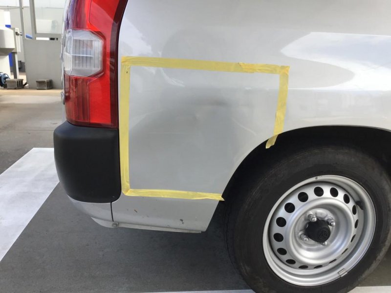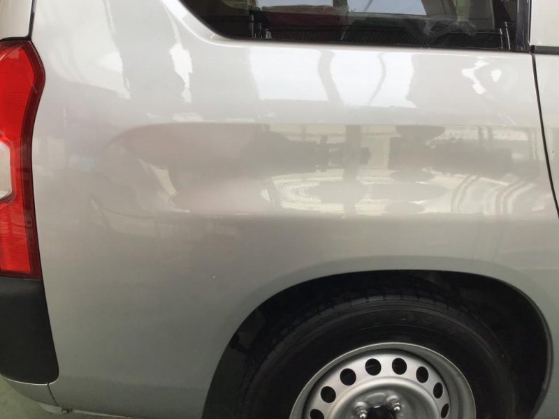 業務車として使われているプロボックスの左リヤフェンダーにできたへこみを、短期間・高品質で修復しました。塗装色の再現性にもこだわり、自然な艶感に仕上げています。