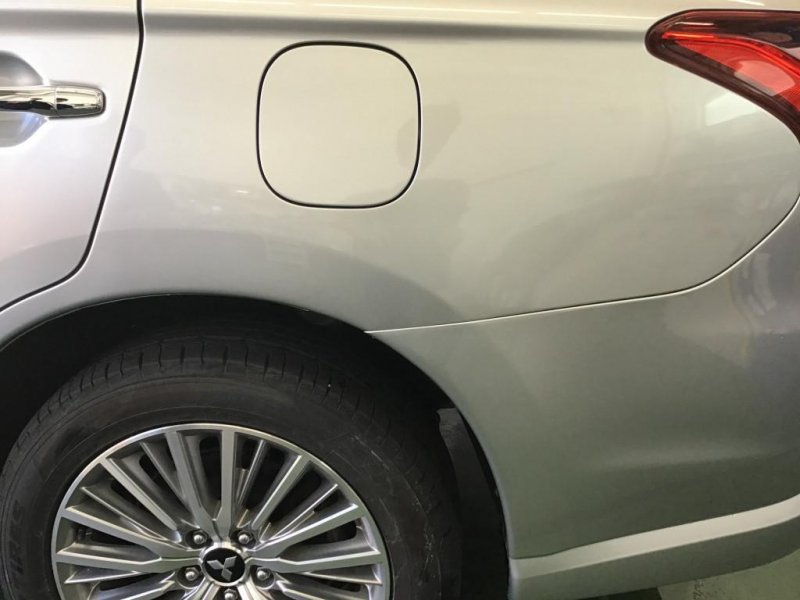 駐車場でできた左側面リヤフェンダーのへこみを、SUVに合わせた丁寧な作業で修復。純正色に調色し、自然な仕上がりでアウトランダーの美しいボディラインを取り戻しました。
