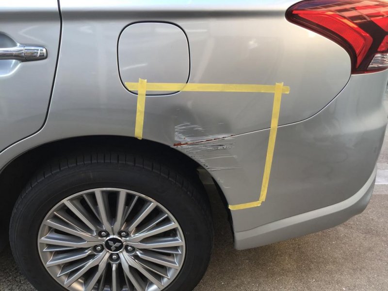 福岡県福岡市南区|アウトランダー(三菱)のキズ・へこみ直し事例( 左リヤフェンダー修理)