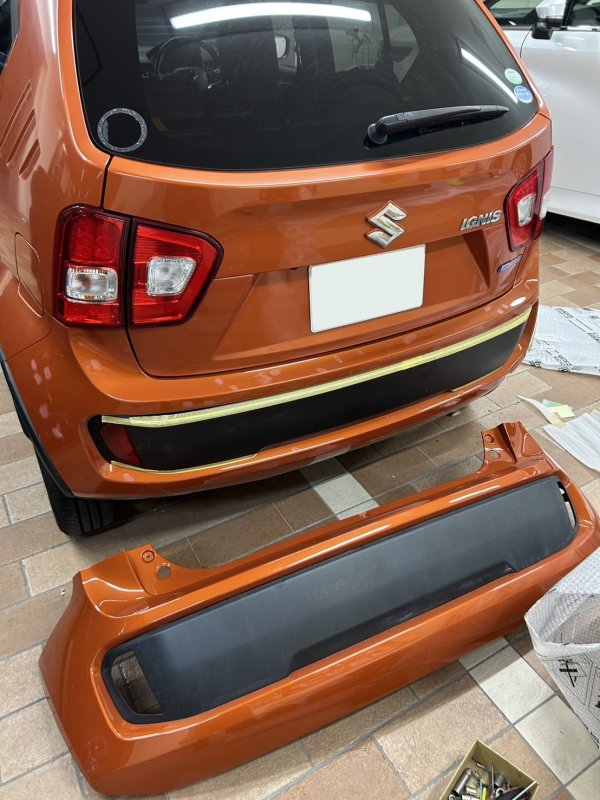 リアバンパーが損傷したとご連絡を頂きご来店頂きましたスズキのイグニス