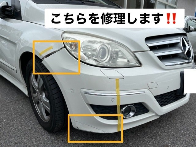 名東区・長久手・日進 ベンツ Bクラス 右フロントバンパー・フロントフェンダー 修理事例