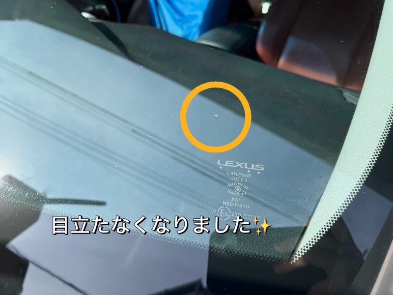 フロントガラスは、飛び石でヒビが入っていたところをリペア修理いたしました。