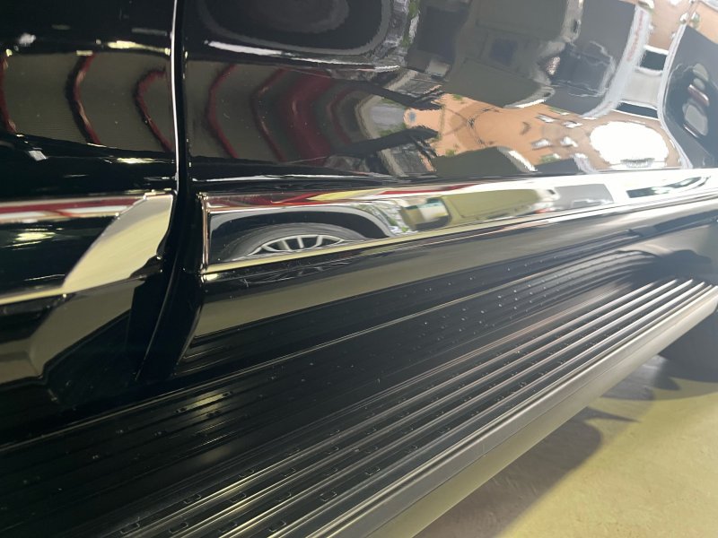 右側はフロントドアとリアドアの傷を鈑金塗装で、左側はリアドアとクォーターの傷を鈑金塗装でお直しして、左右両側にあるサイドプロテクションモール(メッキ部分)にも傷が入っていたため、こちらは新品と交換させていただきました!!✨