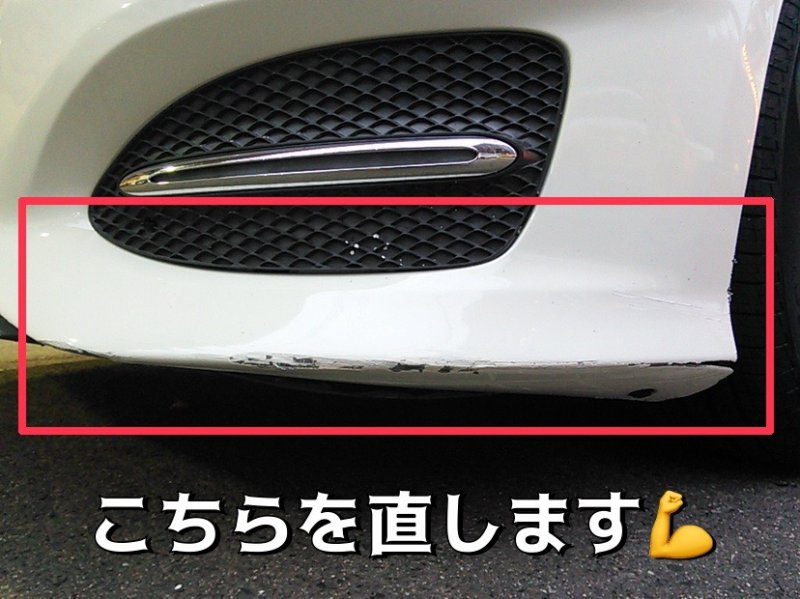 名東区・長久手・日進 ベンツCクラス 左フロントバンパー 修理事例