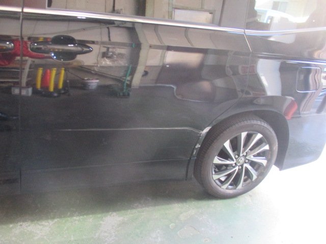 今回、左後ドアとクォーターパネルを板金&塗装で修理いたしました。