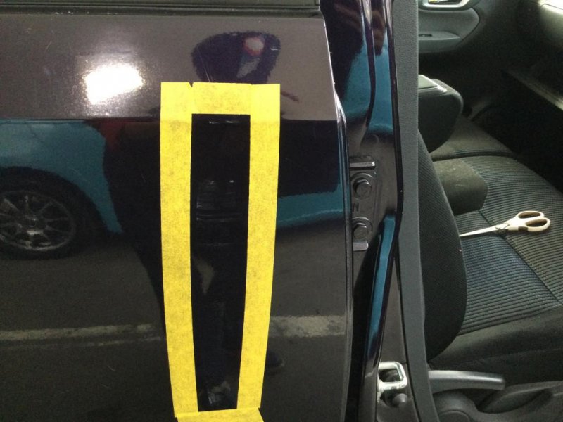 縦にへこみが大きく入ってしまいました。ドアパンチにしては大きな損傷になりました。