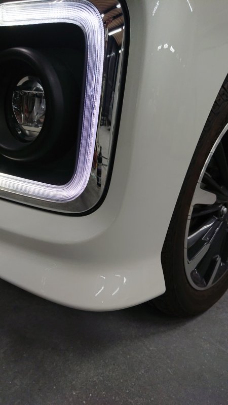 フロントバンパーの左側に擦り傷、凹みキズがありますが、綺麗に修復できてお客様も大変ご満足して頂きました。