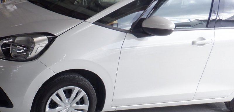 ホンダフィット、助手席側側面(ドアミラー交換)の鈑金修理です。