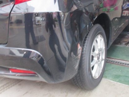 タイヤ後ろのバンパースリキズでご相談頂きました。少しでもお安くして欲しいとのことでバンパー取り外さずに修理いたしました。