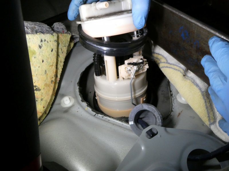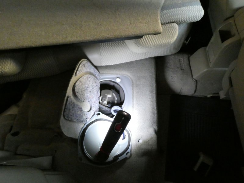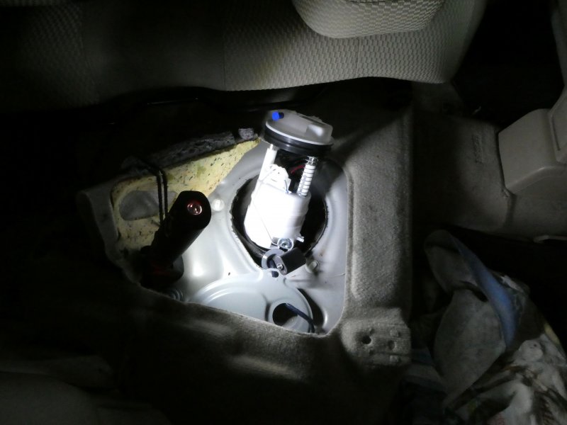 次に、ガソリン給油口よりポンプのモーター音を確認しましたが、音が聞こえないので、直接、燃料ポンプの単体点検をし、モーターが動かないことを確認しました。