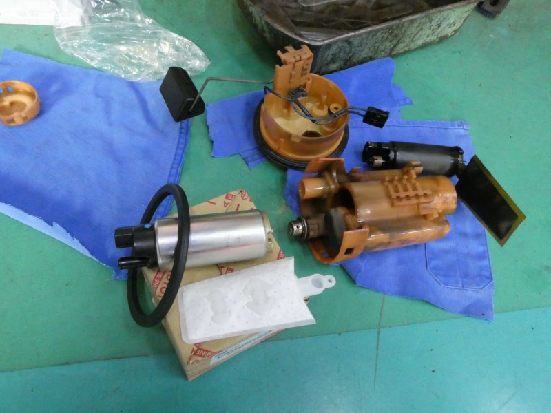 ヴォクシーは真ん中に燃料タンクがあり、ポンプ交換にはセカンドシートを外す必要があります。一旦、モーターを取り外して点検すると動き出しましたが、モーターの駆動力が無いため、交換が必要でした。その他のフィルターにおいても、真っ黒なため交換となりました。新品で組み上げた後は、音もよく快調になりました。
