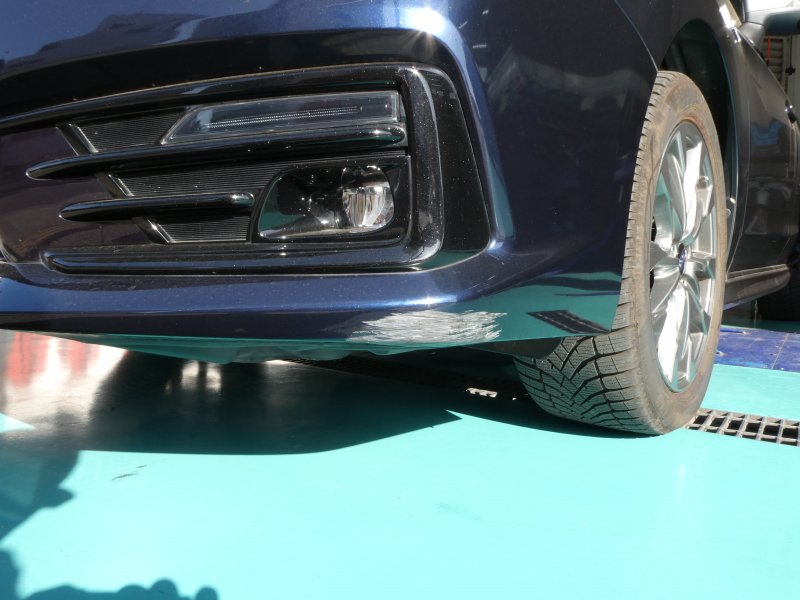 インプレッサ ダークブルーパール(スバル)のキズ・へこみ直し事例(フロントバンパ左側下部を縁石にこすってしまい損傷)神奈川県横浜市保土ケ谷区