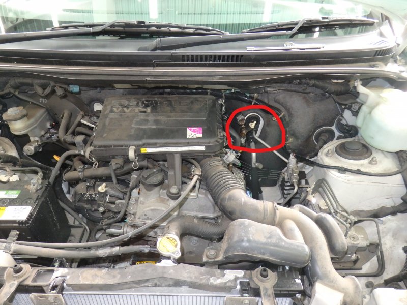 水温計はランプ点灯式ですが診断時は無点灯でした。ホースジョイント周辺ホースを新品へ交換しクーラント交換作業を行いました。
